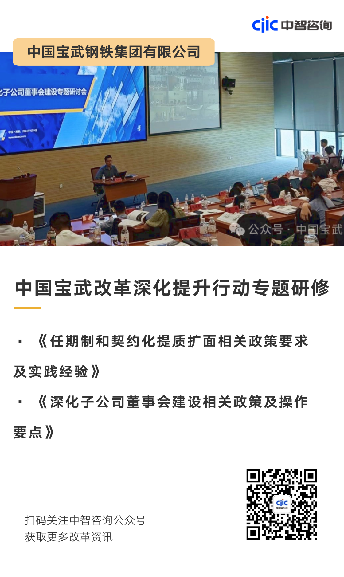 中智咨询合伙人、华东区域总经理颉胜强开展《任期制和契约化提质扩面相关政策要求及实践经验》《深化子公司董事会建设相关政策及操作要点》专题研讨交流。