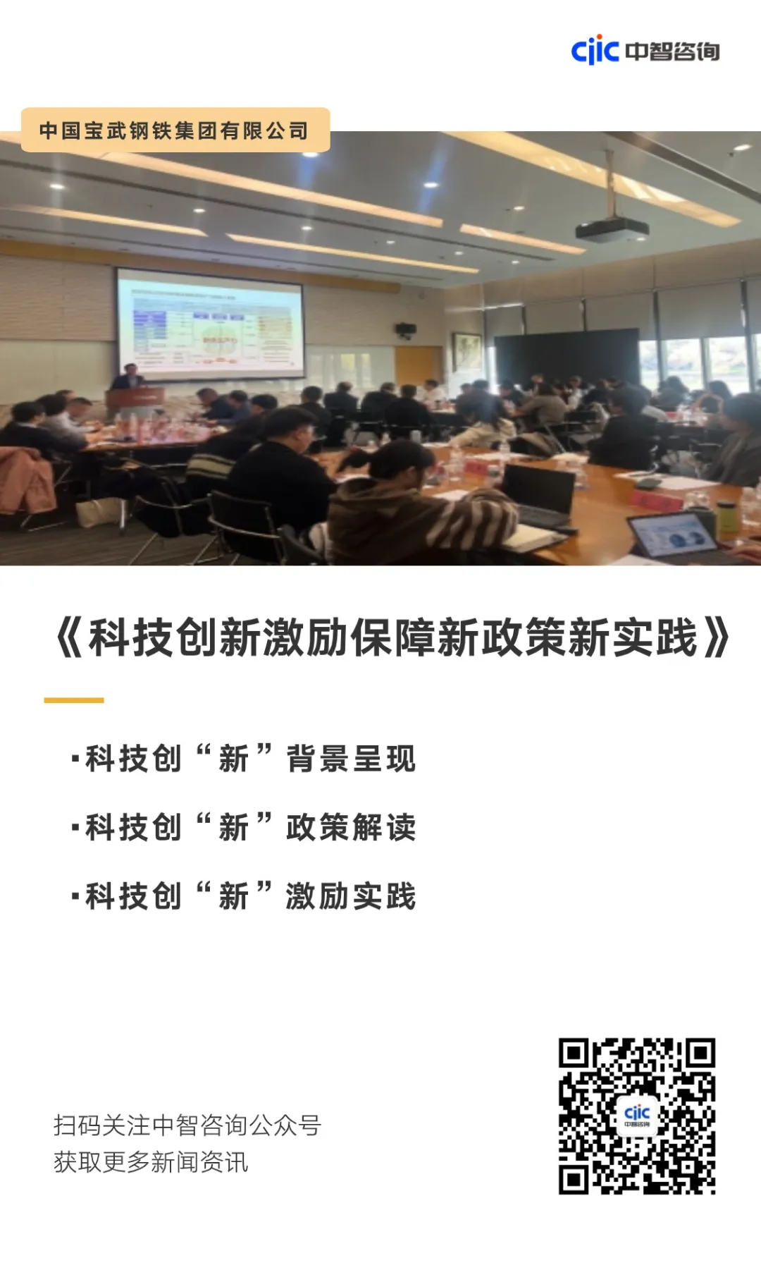 助力钢铁龙头科技创新丨中智咨询受中国宝武邀请开展《科技创新激励保障新政策新实践》专题分享