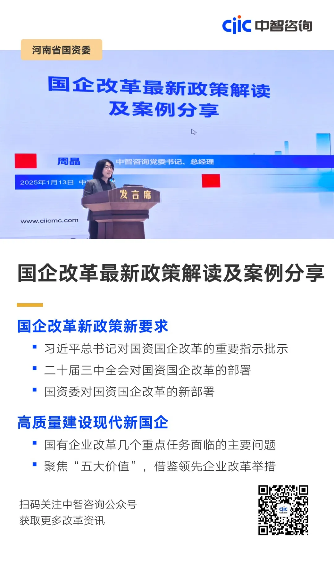 为进一步强化政策学习与实践指导,河南省国资委特邀中智咨询党委书记、总经理周晶开展“国企改革最新政策解读及案例分享”专题讲座。