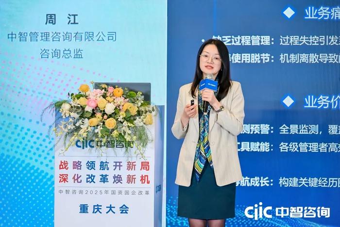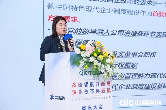 中智咨询党委书记、总经理周晶在致辞中特别感谢了重庆市国资委长期以来的信任与支持,让中智咨询有机会能够在重庆这片充满活力的土地上将创新成果转化为落地实践,与重庆国资国企共同探索新时代高质量发展的“重庆方案”。