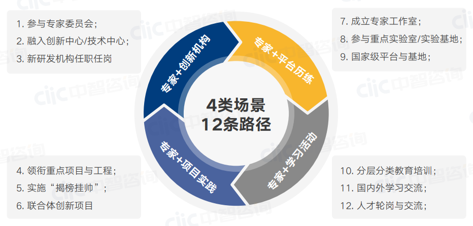 围绕科技人才成长规律,结合企业发展需求,谋篇布局科技人才发展,中智咨询建议,企业可以围绕建设规划、通道设计、立体培养、精准引智、分类评价、创新激励六方面,培养用好科技人才。