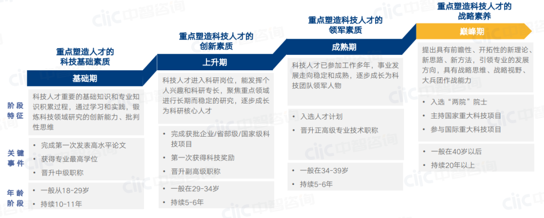 上升期:该阶段科技人才已经进入研究领域,逐渐成为一名专业研究人员。需要为其提供科研团队与项目机会,在项目或课题研究中提升各项素质和能力。
