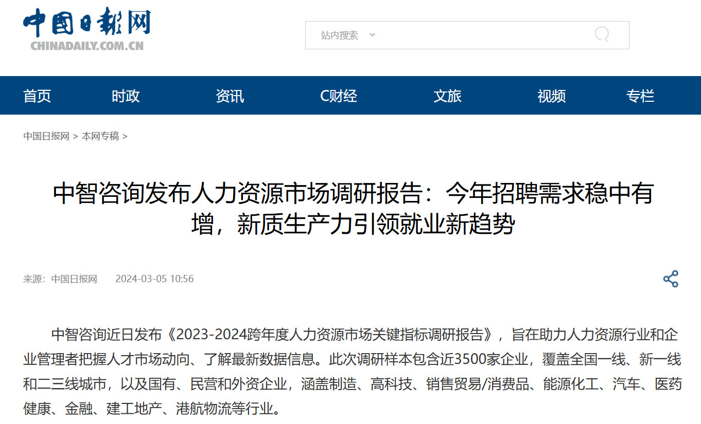 中智咨询近日发布《2023-2024跨年度人力资源市场关键指标调研报告》,旨在助力人力资源行业和企业管理者把握人才市场动向、了解最新数据信息。此次调研样本包含近3500家企业,覆盖全国一线、新一线和二三线城市,以及国有、民营和外资企业,涵盖制造、高科技、销售贸易/消费品、能源化工、汽车、医药健康、金融、建工地产、港航物流等行业。