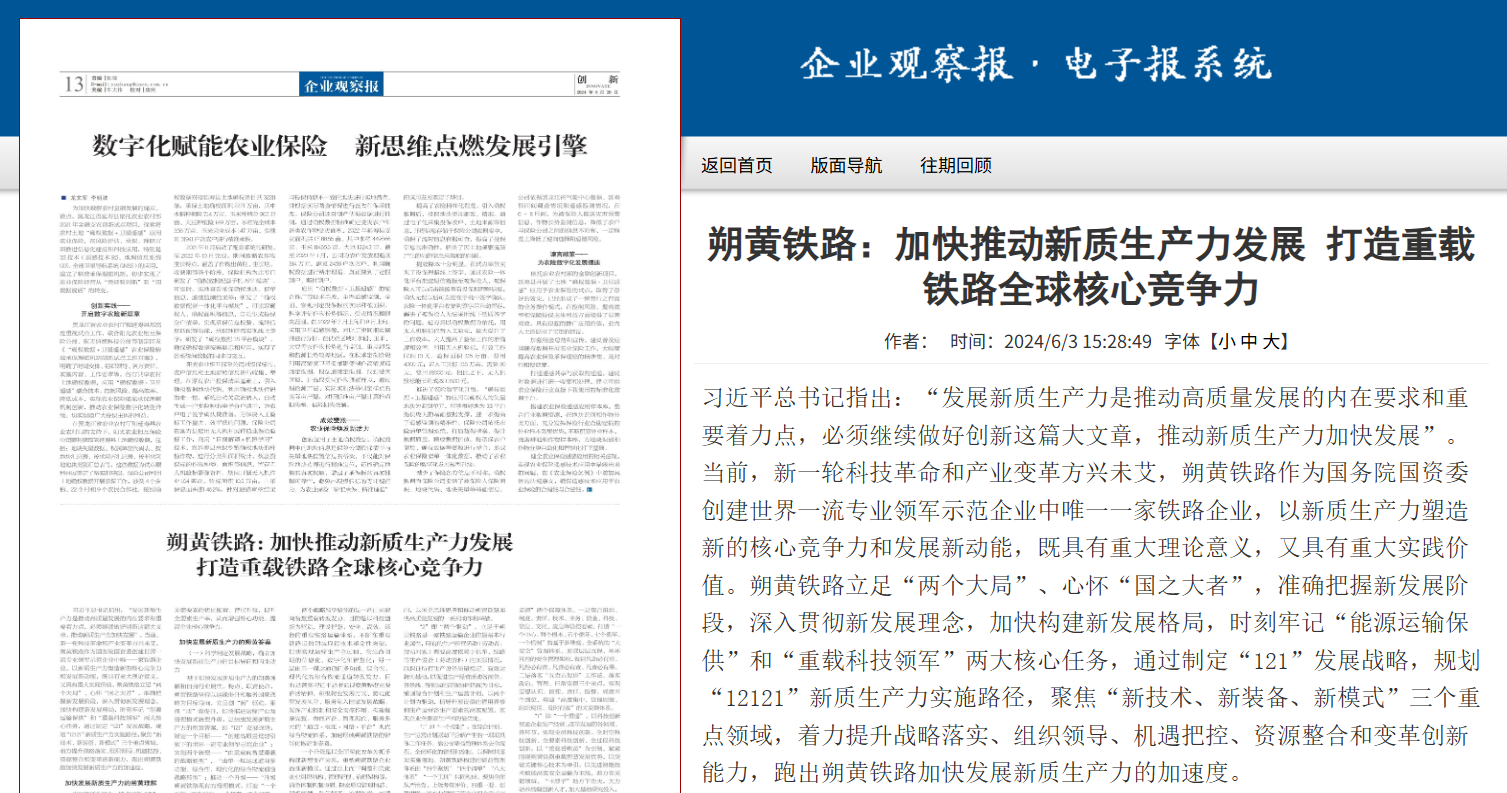 当前,加快高质量发展已成为推动实现中国式现代化的首要政治任务,而新质生产力已经开始在实践中形成并展示出对高质量发展的强劲推动力和支撑力。朔黄铁路将以高度的政治敏锐和政治自觉抢抓发展机遇,加快发展重载运输领域新质生产力,以新质生产力的生动实践推动创建世界一流专业领军示范企业结出丰硕成果。