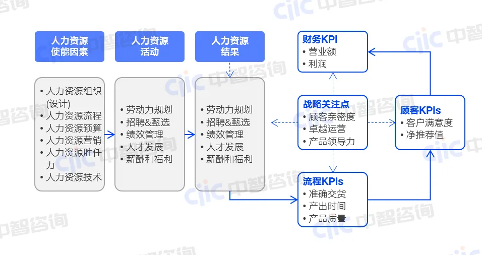 以人力资源使能因素-人力资源活动-人力资源结果-组织绩效为传导路径。