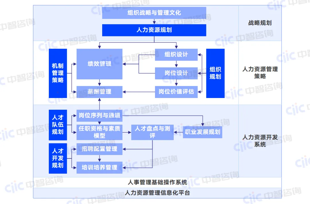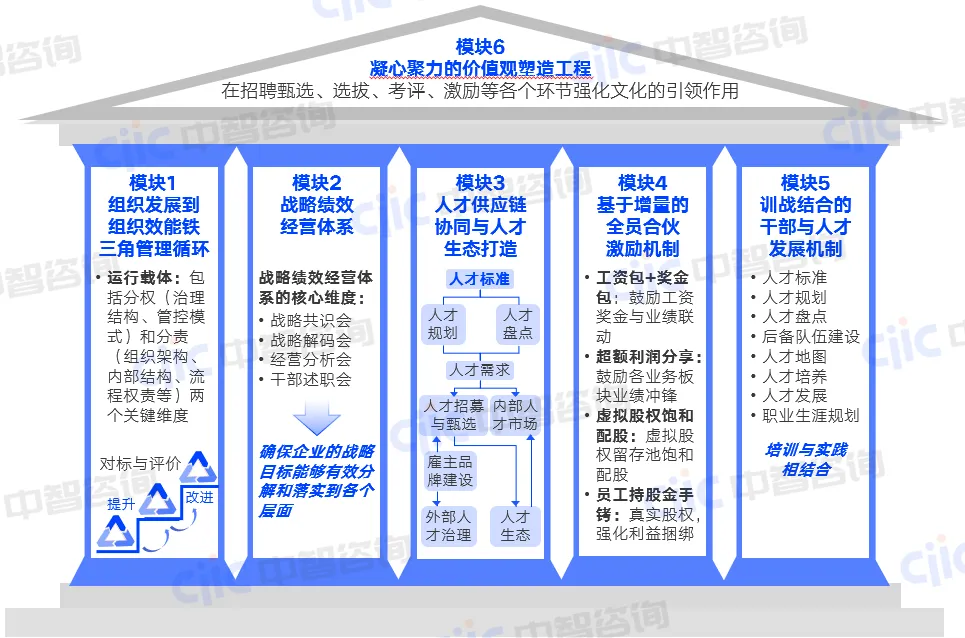 市场上主流的框架模型虽表述各异,但核心逻辑均围绕“战略牵引、组织支撑、人才核心、机制保障、文化倡导”展开。