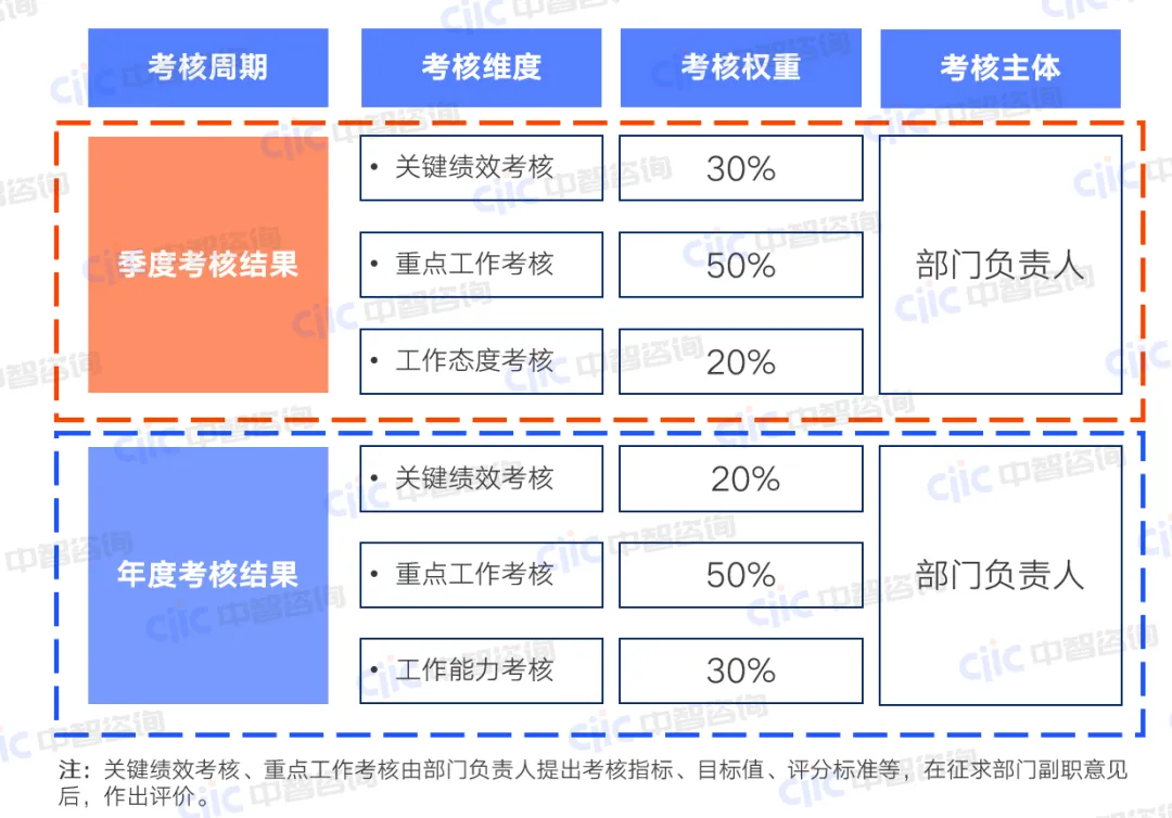 重点关注员工在管理职责和团队协作方面的考核指标,一般为定性评价。