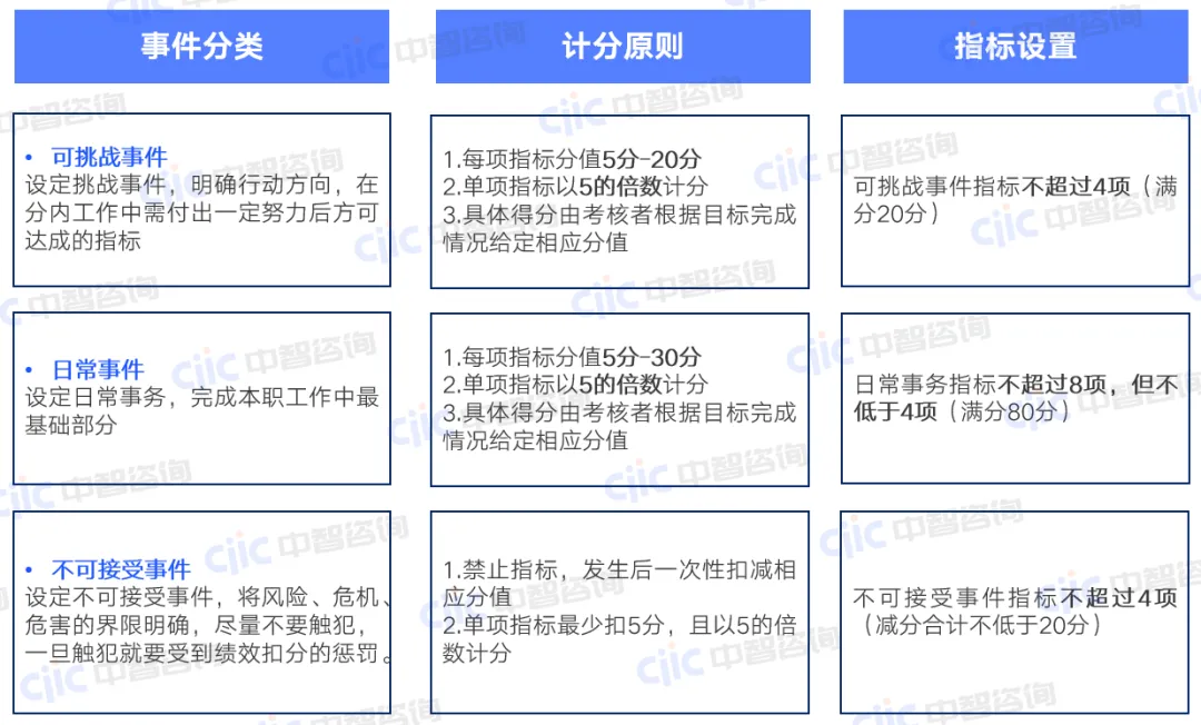 指基于本岗位职责分内应完成的工作,是相对流程化、重复性、固定的日常事务性工作(占员工时间比例达到70%),如果事情做砸了,则要转入到不可接受事件。如:工资准确且按时发放、上会材料准备、工商年审、财务核算、签报拟定等。